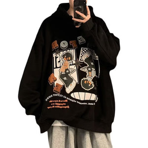 Cartoon Hooded Sweater Men's Spring and Autumn American-style hiphop Top High Street West Coast Fashion Brand Jacket with Velvet Thickened