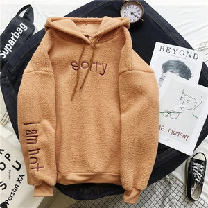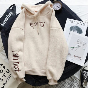 Hooded Velvet Thickeneded Lamb Velvet Furry Sweatshirt for Women..