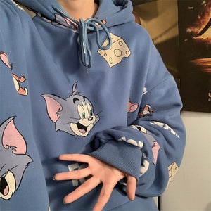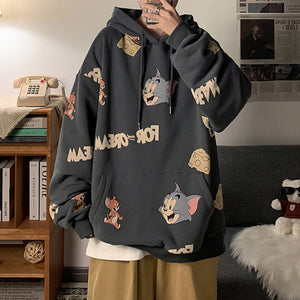 Hooded Sweater Men's Autumn and Winter Velvet Thickened Fashionable Loose ins Jacket bf Lazy Style Student Cartoon Top